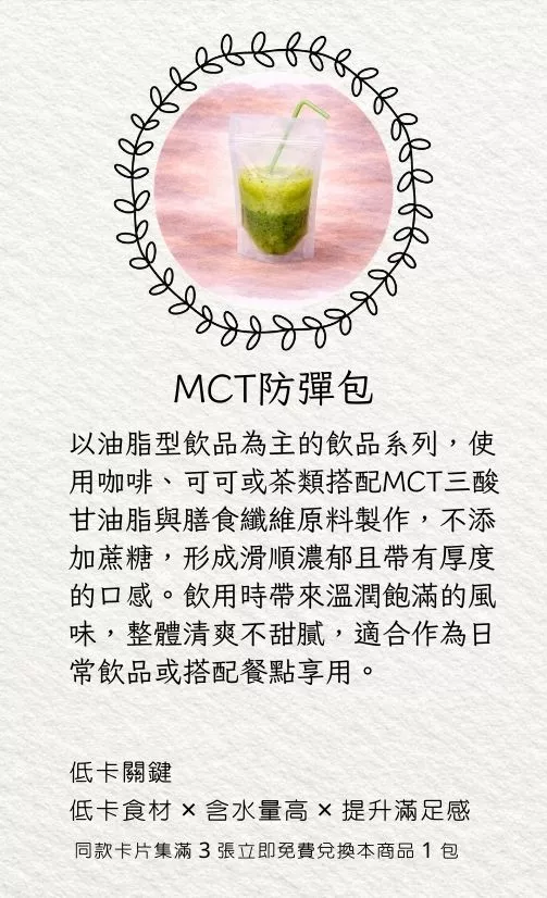 提供各式隨身飲料包或防彈系列飲料除可在斷食使用外,也可以當作一般飲料。並可搭配餅乾一起攜帶外出.出差食用,便利性高。