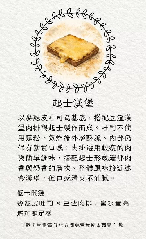 豬肉起士漢堡一份103卡 淨碳2.4克