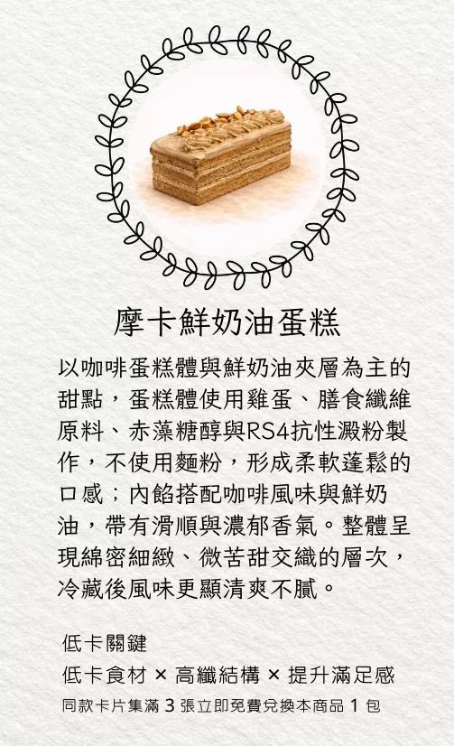 摩卡鮮奶油蛋糕一片32.6大卡|淨碳0.4g