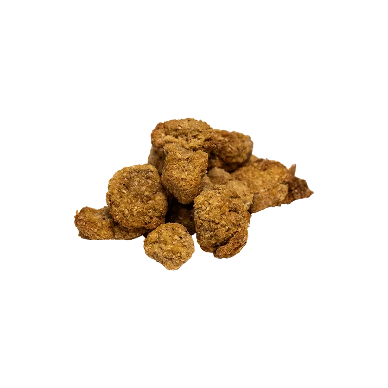 鹹酥雞的外皮主要以麥麩皮製成,完全不添加麵粉與精緻糖分,並且完全不經油炸處理。