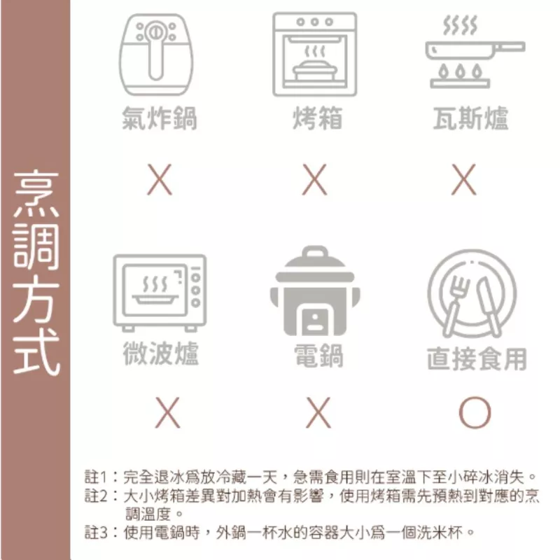 冷凍直接取出或退冰後即可使用,不須經過加熱處理。