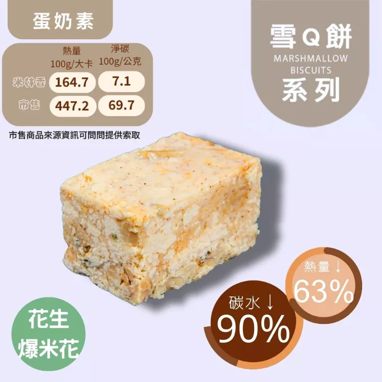 2.雪Q餅酥脆中帶著咬勁,使用麥芽糖醇、異麥芽寡糖和赤藻糖醇調味,甜度十足並帶著陣陣奶香。