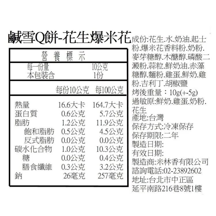 辣花生雪Q餅袋裝 取代85%麵粉- 售價:NT$200