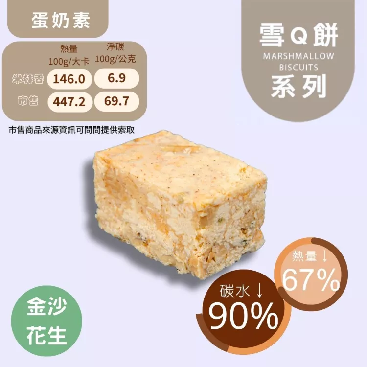 2.雪Q餅酥脆中帶著咬勁,使用麥芽糖醇、異麥芽寡糖和赤藻糖醇調味,甜度十足並帶著陣陣奶香。