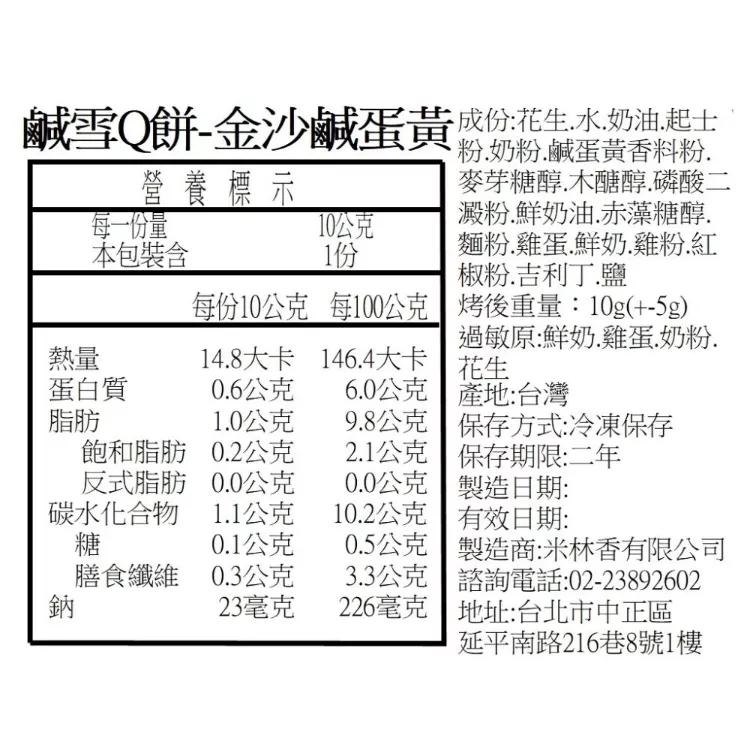 鹹金沙鹹蛋黃雪Q餅 單片 取代85%麵粉