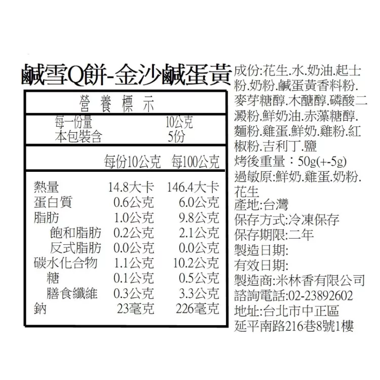 鹹哇沙米花生雪Q餅 單片 取代85%麵粉