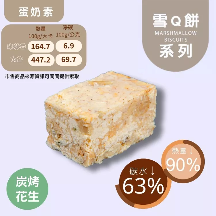 2.雪Q餅酥脆中帶著咬勁,使用麥芽糖醇、異麥芽寡糖和赤藻糖醇調味,甜度十足並帶著陣陣奶香。