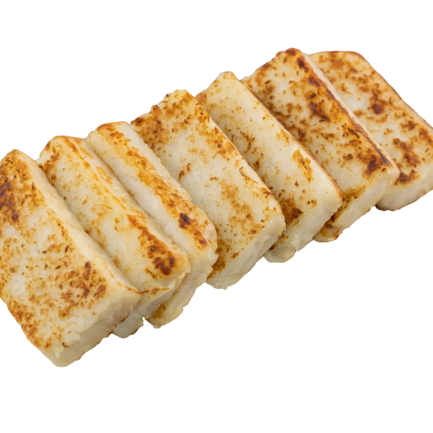 有別於常見的台式蘿蔔糕,此款蘿蔔糕降低在來米的使用,提供您更無負擔的蘿蔔糕選擇。