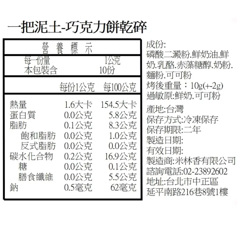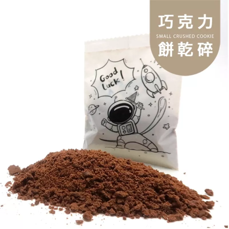 2.此商品為餅乾碎,呈現類似粉末狀,有著十足可可香,適合做為巧克力粉的替代品,可添加在其他甜點上增添滋味。